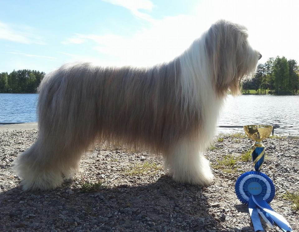 Pieni paussi ja pitkä seuraaminen. Tarkoituksella, halusin tietää tsemppaako se kun on jo alla vaikka mitä hommia ja vähän uuvuttaa. Aika hyvin seurasi, ei mitään merkittäviä virheitä, vähän jätätti välillä mutta korjasi kehoituksesta. Taisin kävellä hitaan vähän liian hitaasti, siinä teki jätätykset. Ihan hyvä fiilis jäi, vaikka koira ei oikein osannut mitään.